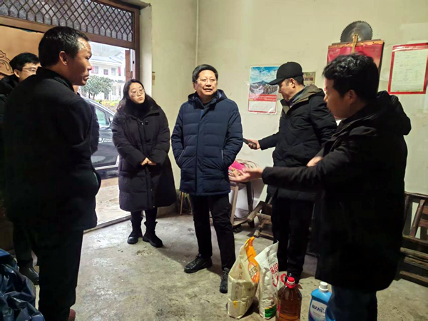 1月29日,在新春佳节即将到来之际,学校党委书记陈礼龙、副校长耿保荃,纪委书记杨华,工会副主席陈建波一行赴学校乡村振兴帮扶村——谷城县紫金镇花园村,开展春节前走访慰问活动。谷城县副县长王学伟、紫金镇党政主要领导、驻村工作队、花园村支“两委”干部陪同慰问。